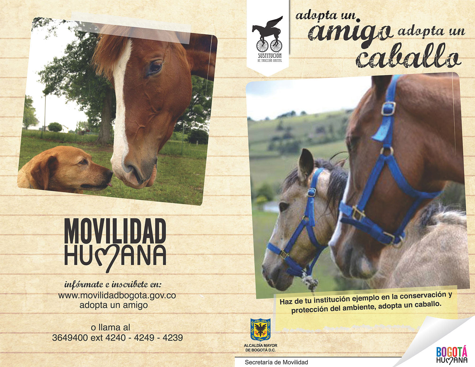Brochure en colaboracion para la campaña de Sustitucion de tracción animal / VTA. Secretaria de movilidad para la Alcaldia Major de Bogotá. Co-owner rights: Secretaria de Movilidad
